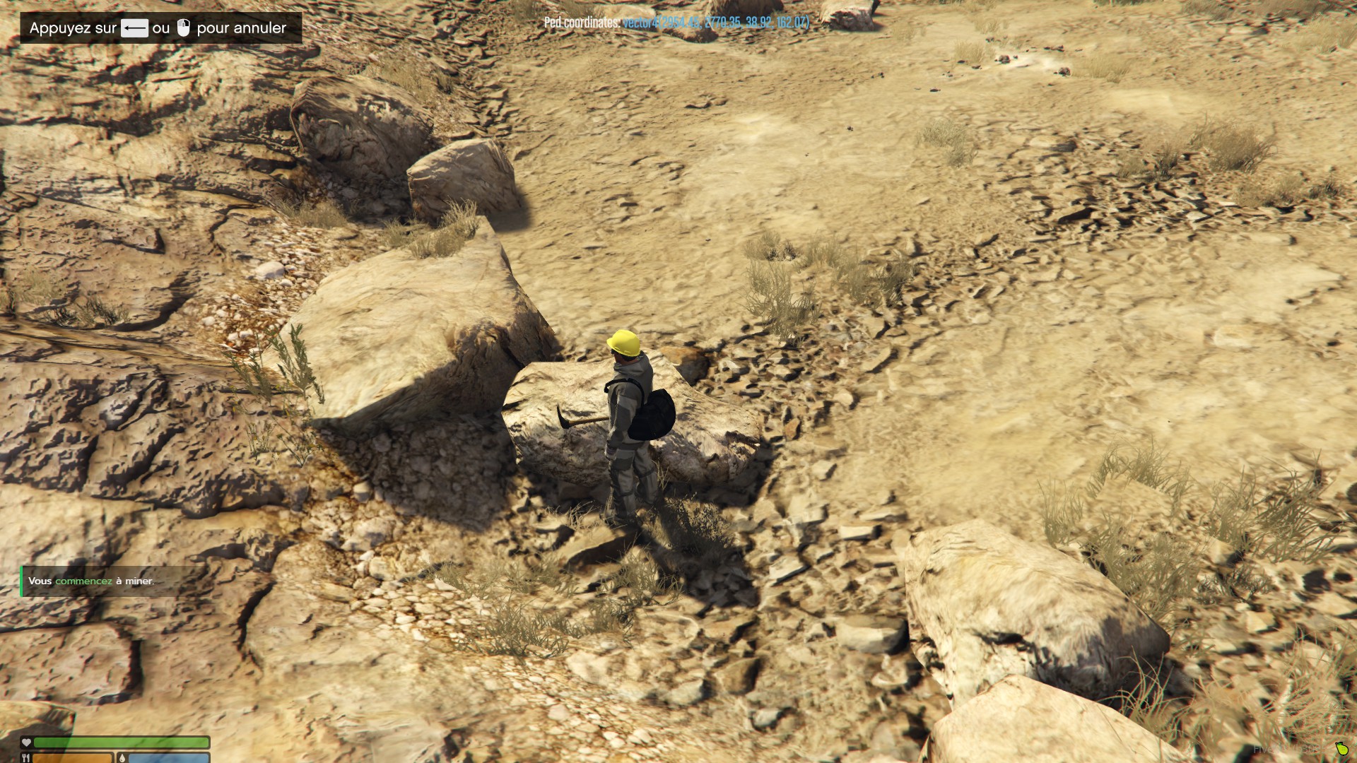 S'approcher des rochers spécifiques pour extraire.